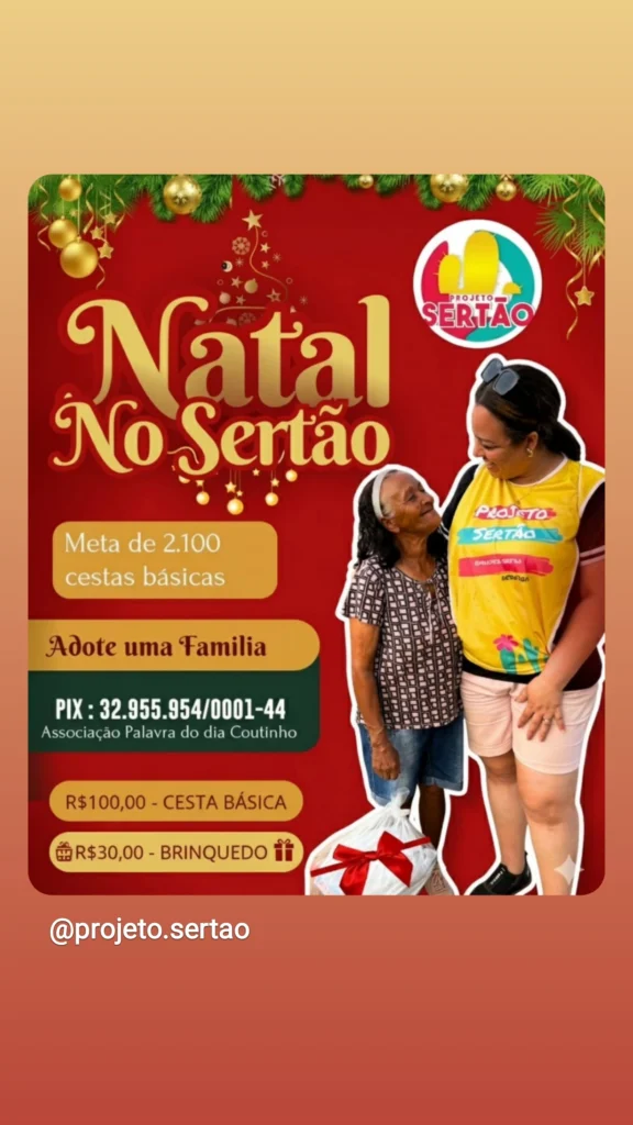 Juntos podemos levar o verdadeiro sentido do Natal no Sertão. 😍🌵 Há 8 anos, o Projeto Sertão leva alimento, esperança e amor para quem mais precisa.Ano passado ultrapassamos a meta, e cremos que esse ano será ainda maior! 🙌 🧺 Adote uma família com R$100,00 (cesta básica)🎁 Presenteie uma criança com R$30,00 (brinquedo) 📲 Chave […]