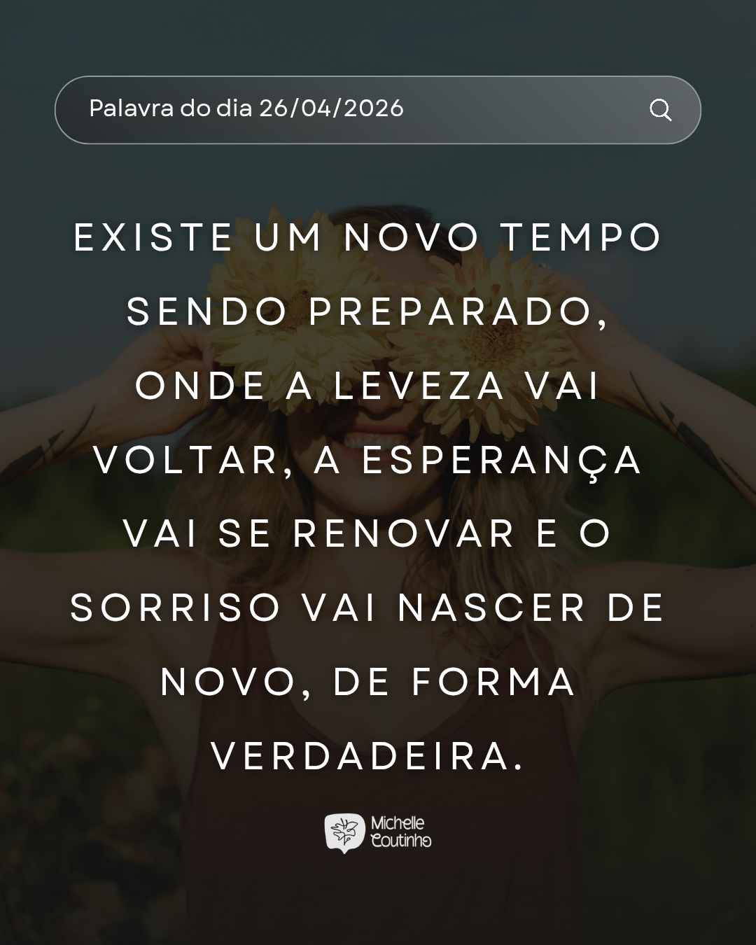 O que hoje te fez chorar não vai ser permanente. Existe um novo tempo sendo preparado, onde a leveza vai voltar, a esperança vai se renovar e o sorriso vai nascer de novo, de forma verdadeira.